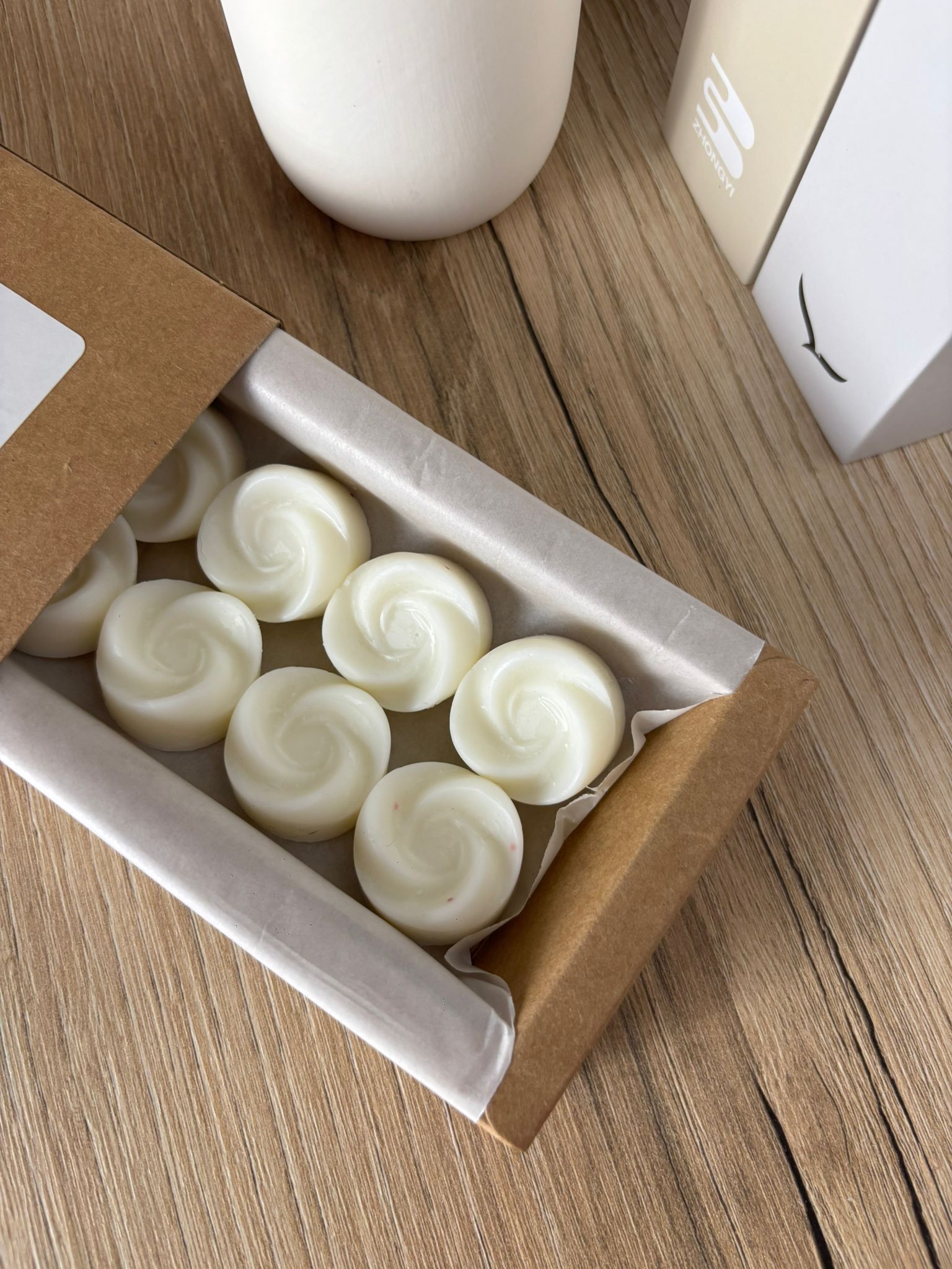 Cajita con más de 55 g de cera vegetal en forma de delicados bombones florales, creados para perfumar y decorar tu hogar. Su duración supera las 50 horas de uso, siempre que se utilicen de manera adecuada.